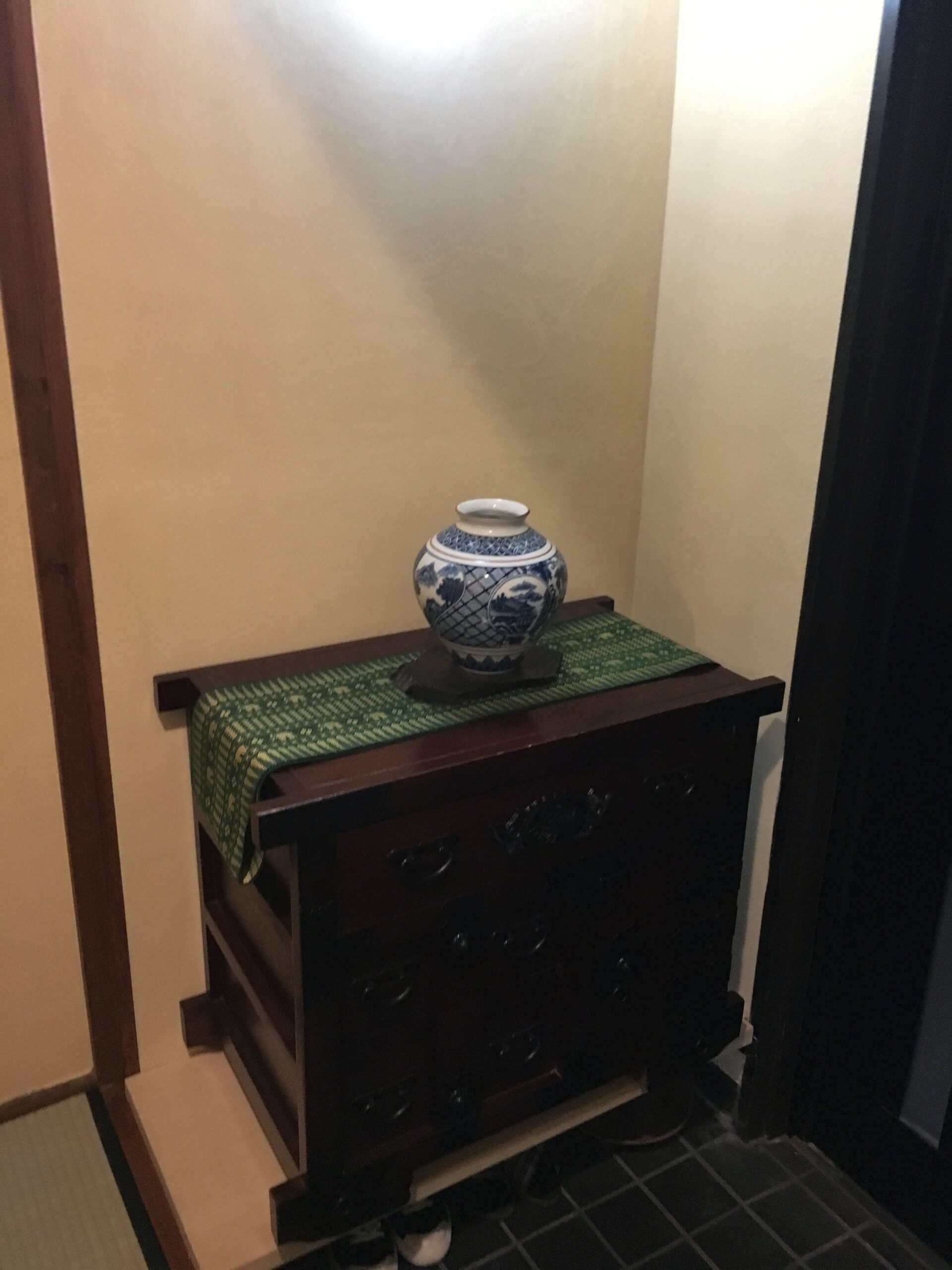 家具は民芸調の車箪笥です。よく購入している古道具屋さんで購入したものですが、ネット通販にも出回っているタイプです。